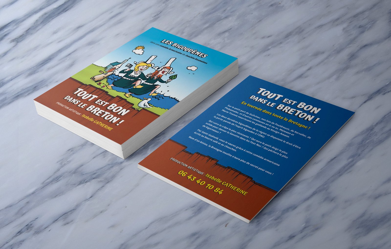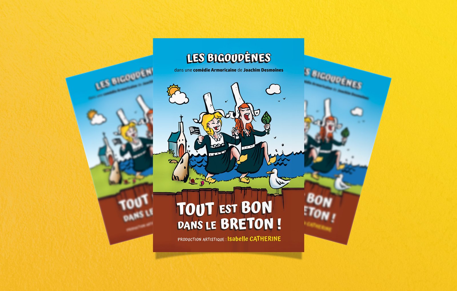 À la demande de la productrice artistique de la pièce, Isabelle Catherine, refonte de l’illustration et de l’ensemble du flyer afin de rendre le visuel et les bigoudènes plus jeunes et plus sexys pour pouvoir vendre la pièce à plusieurs théâtre et, ensuite, attirer davantage de spectateurs.