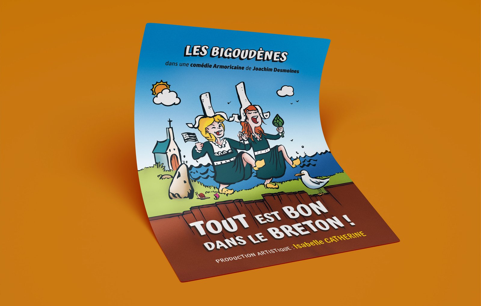 Refonte de l’affiche de la pièce de théâtre « Tout est bon dans le breton » en s’inspirant, à la demande d’Isabelle Catherine, de l’ancienne affiche