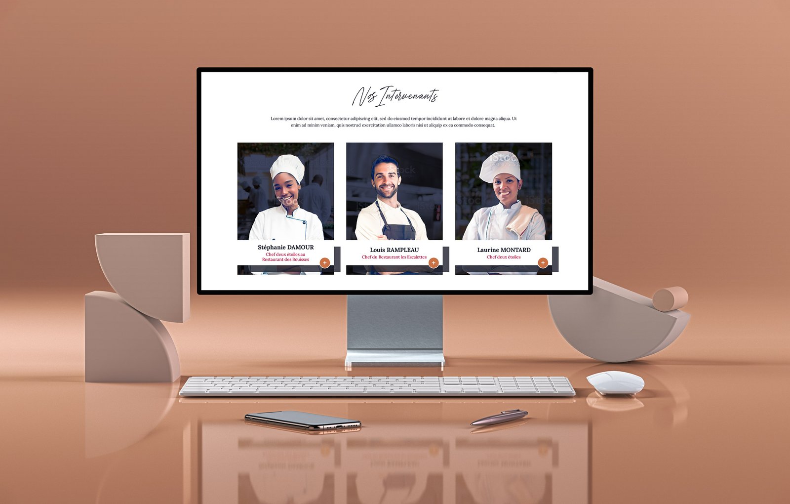 Proposition d’un univers classe et distingué pour permettre aux utilisateurs de se projeter culinairement parlant dans les saveurs qu’ils pourront déguster au sein de cet établissement gastronomique.